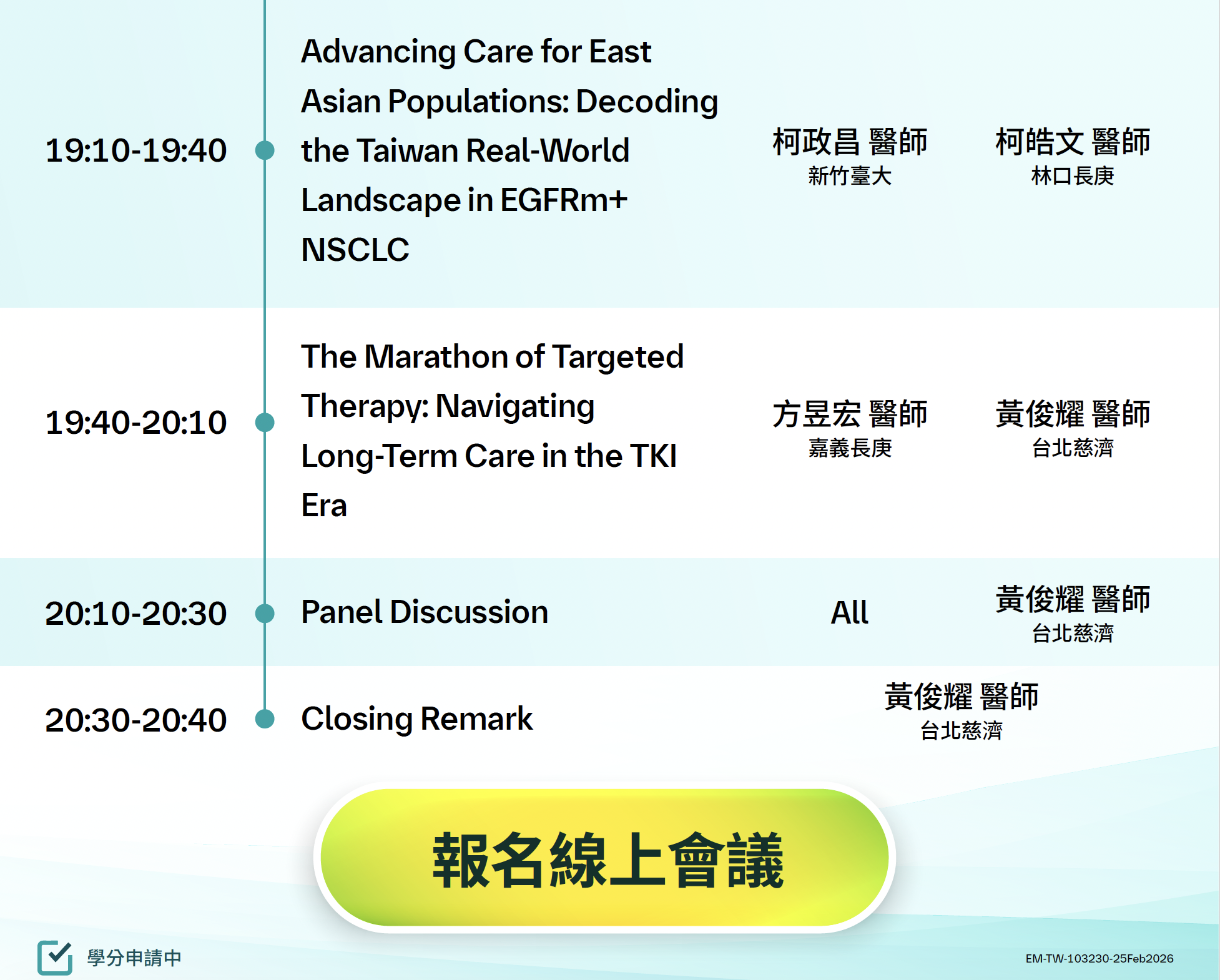 3月25日(三)「Personalized Pathways to Long-term Survival in EGFRm NSCLC」會議訊息公告